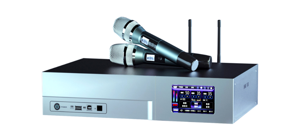 觸摸屏顯示操作,中英語言可選擇,直接操作菜單,簡單方便。內置UHF頻段無線麥克風模塊,可同時使用30套不串頻。內置三種大場景模式可選:K歌、聽歌、場景。專業級卡拉OK效果可連接電腦調試